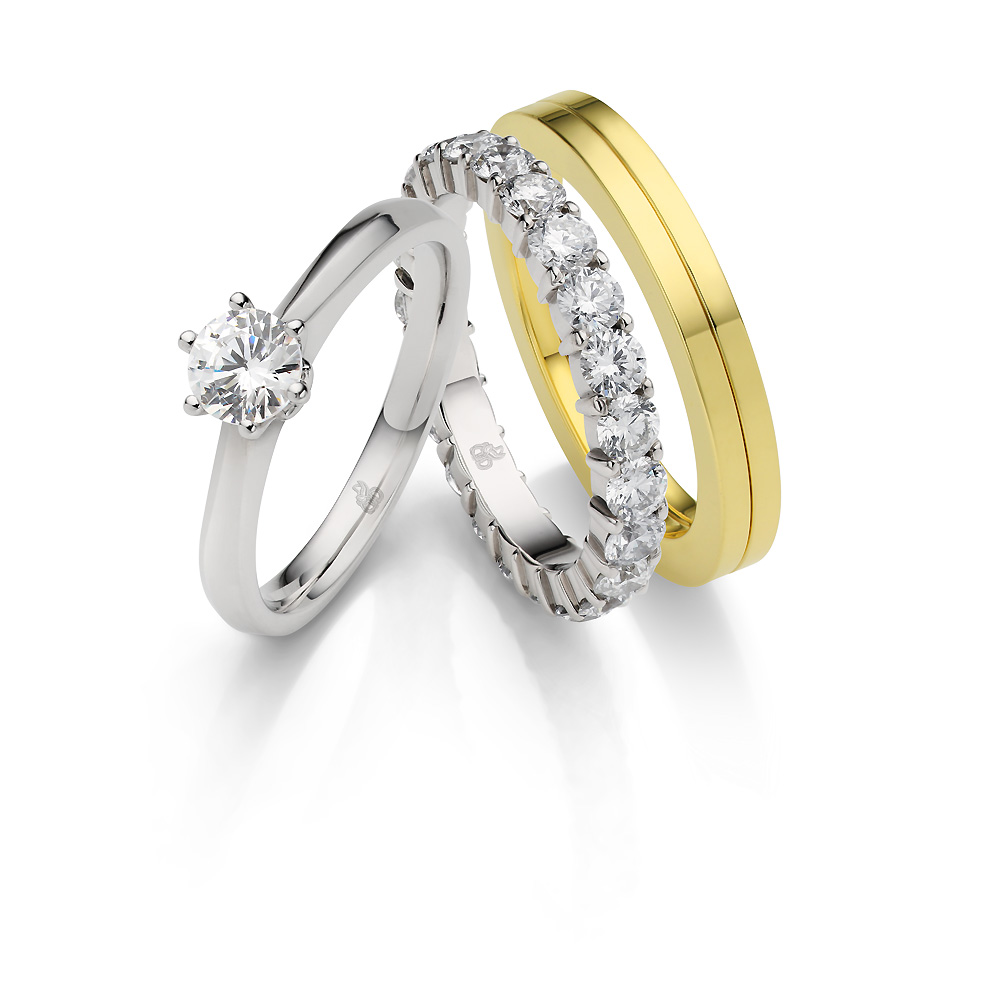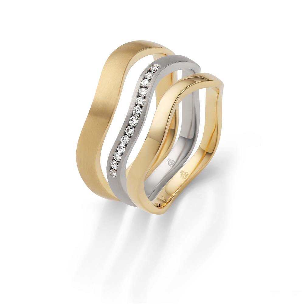 Jeder Ring kann beliebig kombiniert werden und ist in allen Legierungen erhältlich.