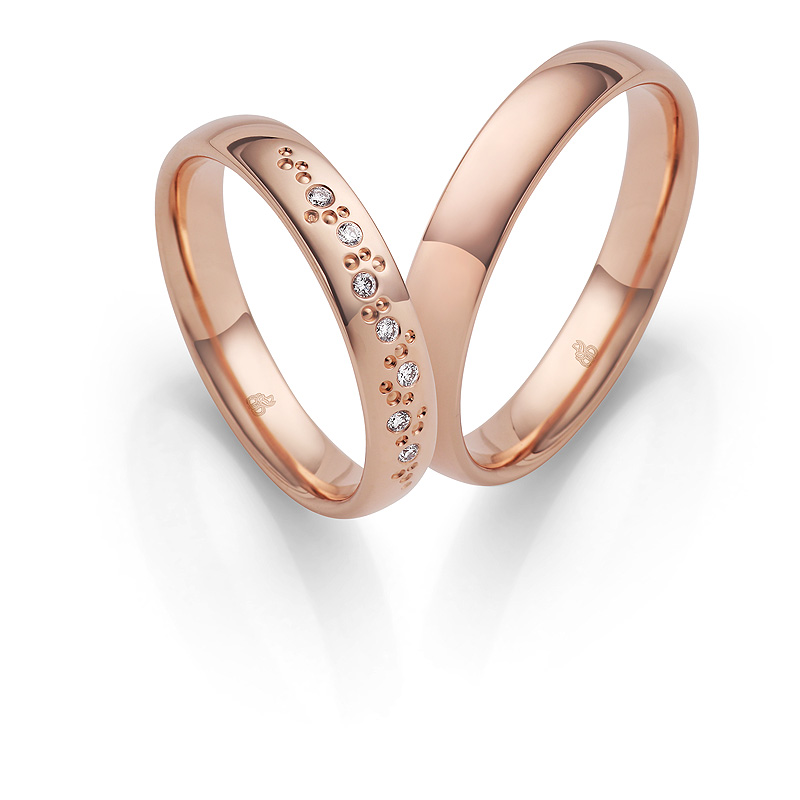 Durch Brillanten erhalten eure Ringe zusätzlichen Glanz und werden einzigartig. Ihr könnt die Anzahl, Fassart, Größe, Qualität, Position und Farbe der Brillanten wählen.