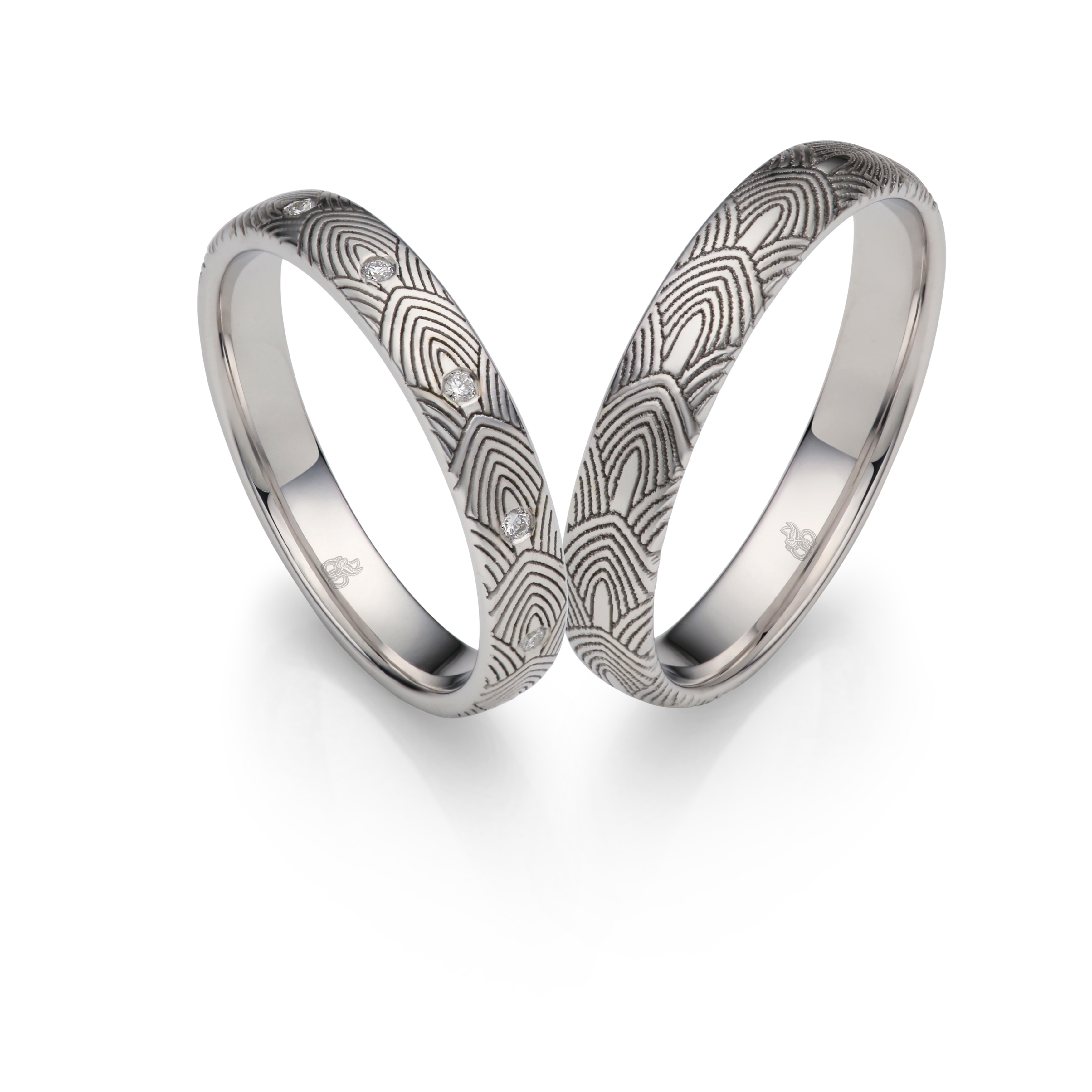 Hier könnt ihr eure eigene Handschrift verewigen oder sogar den Fingerabdruck des anderen auf dem Ring platzieren. Eurer Kreativität sind keine Grenzen gesetzt. Zusätzlich kann euer Text mit einem Symbol wie einem Herz, einer Kutsche oder Tauben veredelt werden.